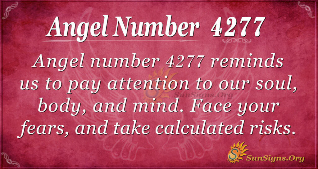 The number 772 in angel number 4277 reminds us to pay attention to our soul, body, and mind. That said, face your fears and don’t be afraid to take calculated risks.