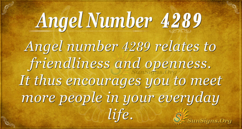 Firstly, what does 4289 mean spiritually? In the spiritual plane, number 4289 represents all social bonds. It also fills the air with honesty, cheerfulness, and love. The angels use this number to encourage people to stay in touch with others. Their desire is for everyone to maintain steady relationships in their communities. At the same time, they fight against selfishness and loneliness. Because of that, they promote number 4289.