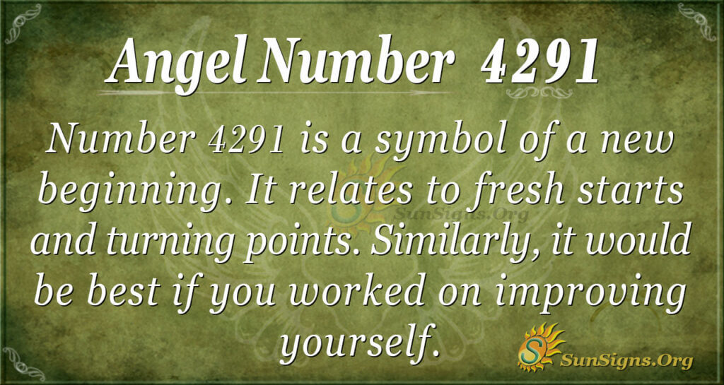 Number 4291 is a symbol of a new beginning. It relates to fresh starts and turning points. Similarly, it would be best if you worked on improving yourself. Further, the angel wants you to know they’re with you. Likewise, focus on something bigger and better. However, it would help if you concentrate on what you can do best. Strategize yourself and lay down plans for a bright future.