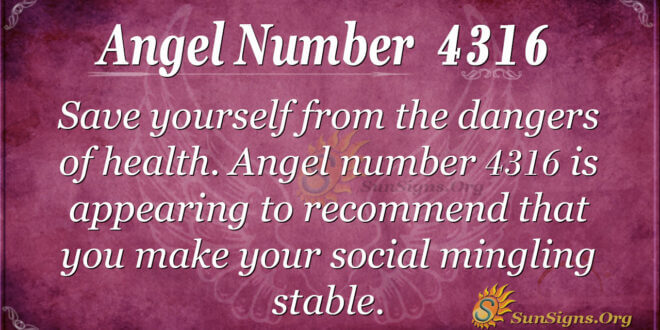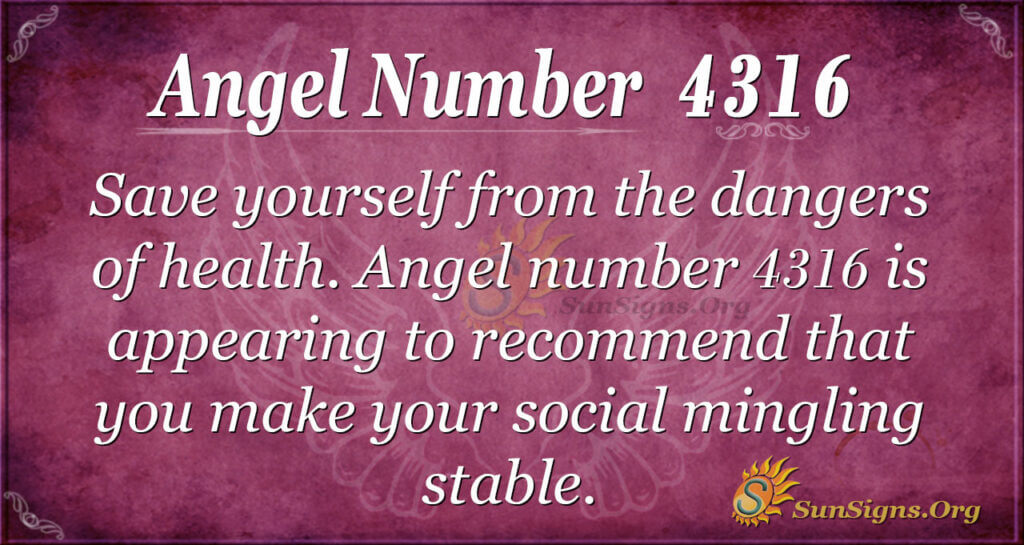 Save yourself from the dangers of health. Angel number 4316 appears to recommend that you make your social mingling stable. In this case, make it a habit to escape things that emotionally harass you. Ideally, family and relationships are the heart of our existence. Therefore, if you realize your relationship is draining you, call it off before it gets late. You are a superior soul that cannot stink to pure stress.