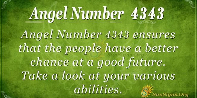 Angel Number 4343 has the sole mandate to ensure that the people under its influence have a better chance at a good future. Furthermore, the significance of this angel number allows you to take a look at the various abilities that you are ignoring. Therefore, it serves to remind you that you have a better chance of utilizing those skills and talents to pursue your dreams.