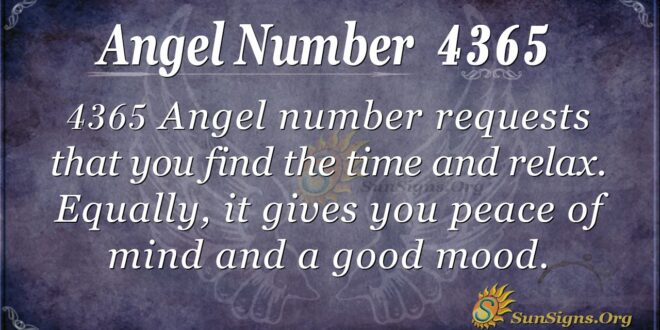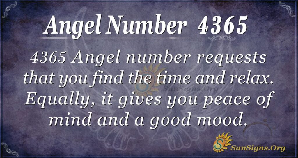 4365 Angel number requests that you find the time and relax. Equally, it gives you peace of mind and a good mood. Be still for your own good. Improve your courage.