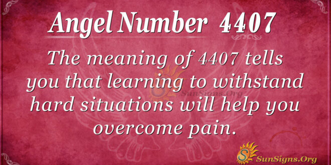 Everything that comes your way is risky. You need to be cautious while interacting with people and the environment near you. The meaning of 4407 tells you that learning to withstand challenging situations will help you overcome pain. Your guardian angels want to partner with you in the process of enduring pain.