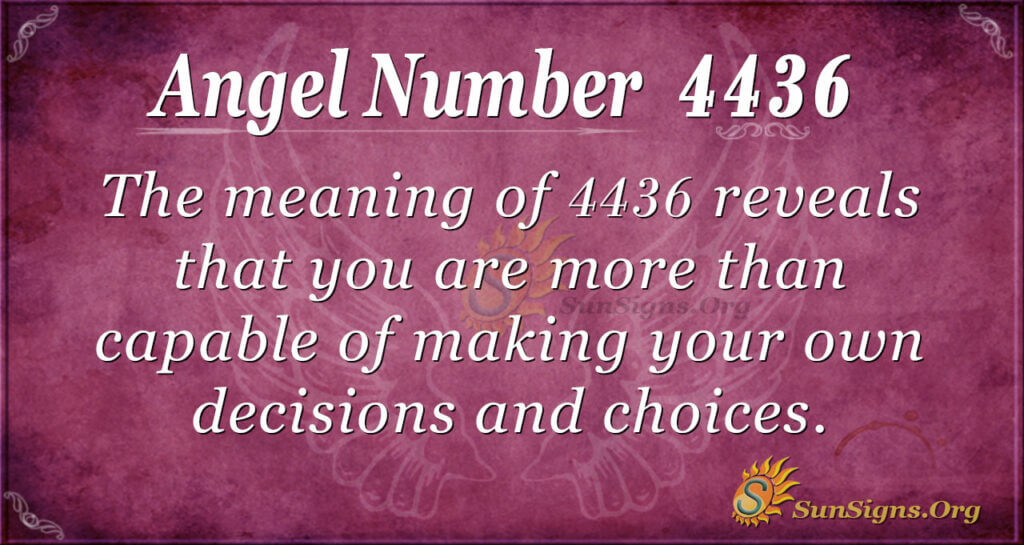 Do not let people tell you what you need to do and what you need not do with your life. The meaning of 4436 reveals that you are more than capable of making your own decisions and choices.