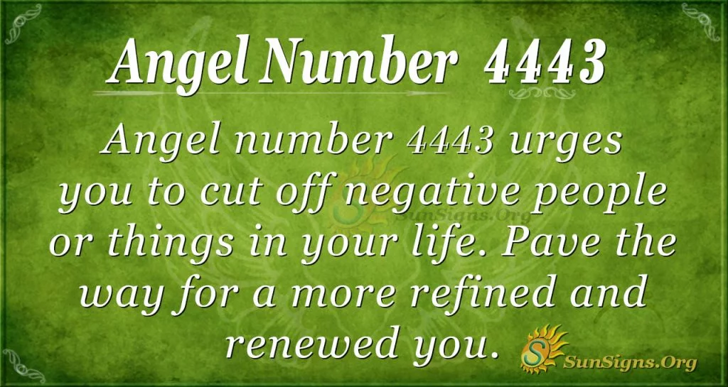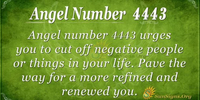 What does the number 4443 symbolize? The number 4443 in angel number 4443 symbolizes purpose, creativity, and spiritual manifestation. Seeing this numerology is a sign that Ascended Masters are passing across the much-needed support and guidance. Therefore, trust that you will accomplish your purpose as long as you work hard and aim higher.