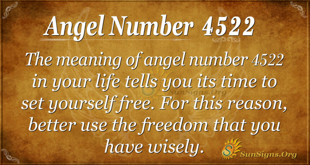 What is significant about the number 4522? The significance of the 4522 angel number 4522 symbolizes positive changes, confidence, and prosperity. It indicates that you remain positive, regardless of the changes that may arise. Besides, keep an open heart and mind, and prepare to seize the new opportunities presented to you.