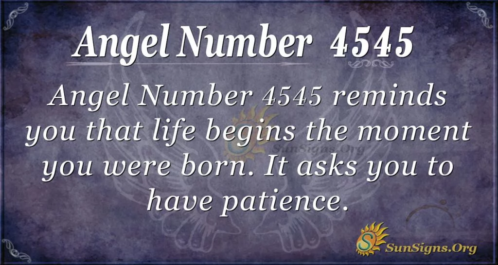 Do you see the number 4545 everywhere? Seeing the number 4545 everywhere symbolizes your relationship with others plus your hobbies. Angel number 4545 reminds you that life begins the moment you are born. So, never wait to feel content when you have it all, but always remain grateful for guardian angels’ blessing in your life.
