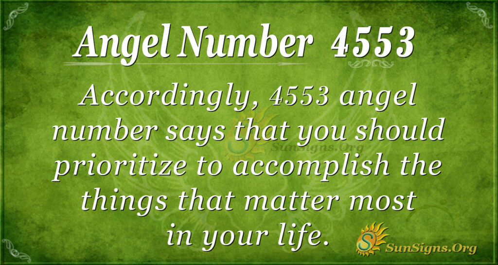 You are still wondering what 4553 means because you keep seeing 4553 everywhere daily. Indeed, your angels have a message that you need to grasp very well. Angel number 4553 says that you can accomplish more of your goals by doing the first things first. So, plan your life to show the step-by-step roadmap that will take you towards your mission.