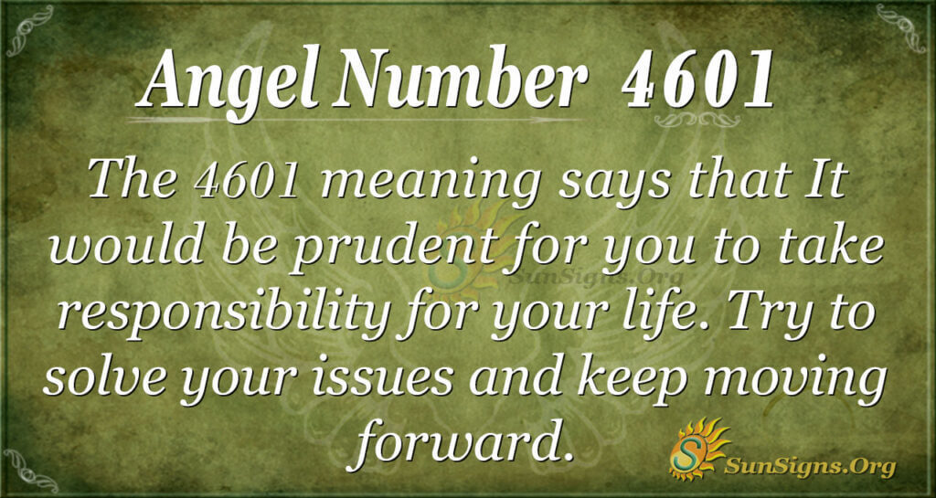What does 4601 mean spiritually? The 4601 meaning says that It would be prudent for you to take responsibility for your life. Try to solve your issues and keep moving forward. Furthermore, it would be excellent if you did not wait for things to happen to you; instead, be the one to make things happen. For instance, if you lost your source of income, you don’t have to wait for someone else to push you to apply for a job. Wake up and make things happen to better your life.