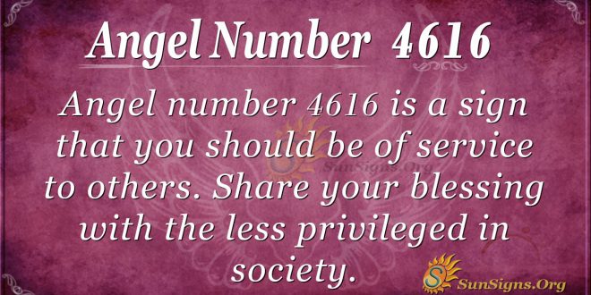 Seeing 4616 everywhere is a sign that you need to continue being of service to others. It does not hurt to share your blessing with the less privileged in society. Your guardian angels are telling you that your kind heart has always been your gift.