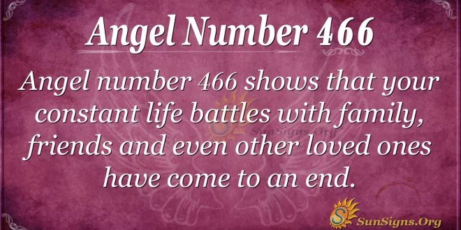 The angel number 466 symbol is a way for the guardian angels to communicate to you that your constant life battles with family, friends, and even other loved ones have come to an end.