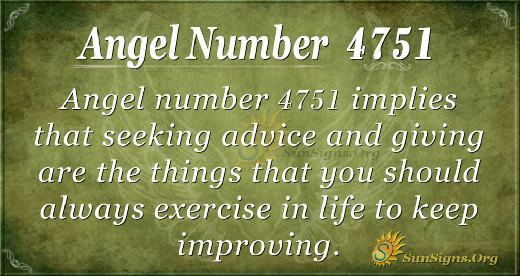 Angel number 4751 implies that seeking advice and giving are the things that you should always exercise in life to keep improving. In other words, you will gain more knowledge if you can hear other people’s advice. On the other hand, your guardian angels are urging you also to give someone advice. This will help change or improve lifestyle.