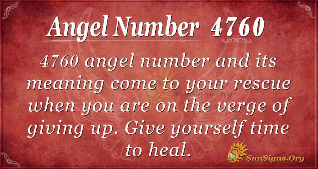 Numerology 40 in this angel number represents a complete set of joy, love, and blessings. Before you reach your fullest potential, work on uplifting and inspiring others without expecting a reward. Archangels have given you a chance to transcend. Remember to act as a source of light for the unknown. That said, 4760 symbolism gives you hints on how to get started.
