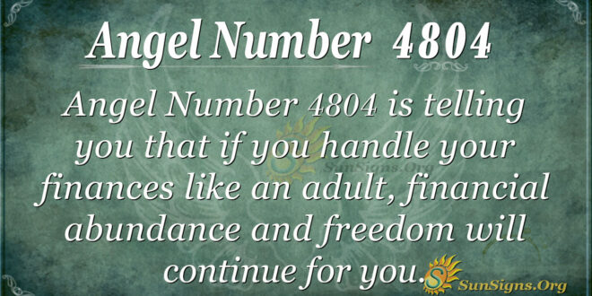 Angel Number 4804 indicates that if you manage your finances responsibly, financial abundance and freedom will continue to be yours. Abundance will flow in your life as long as you make the right decisions and choices.