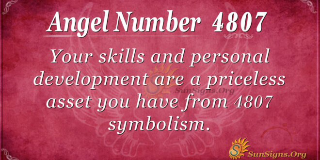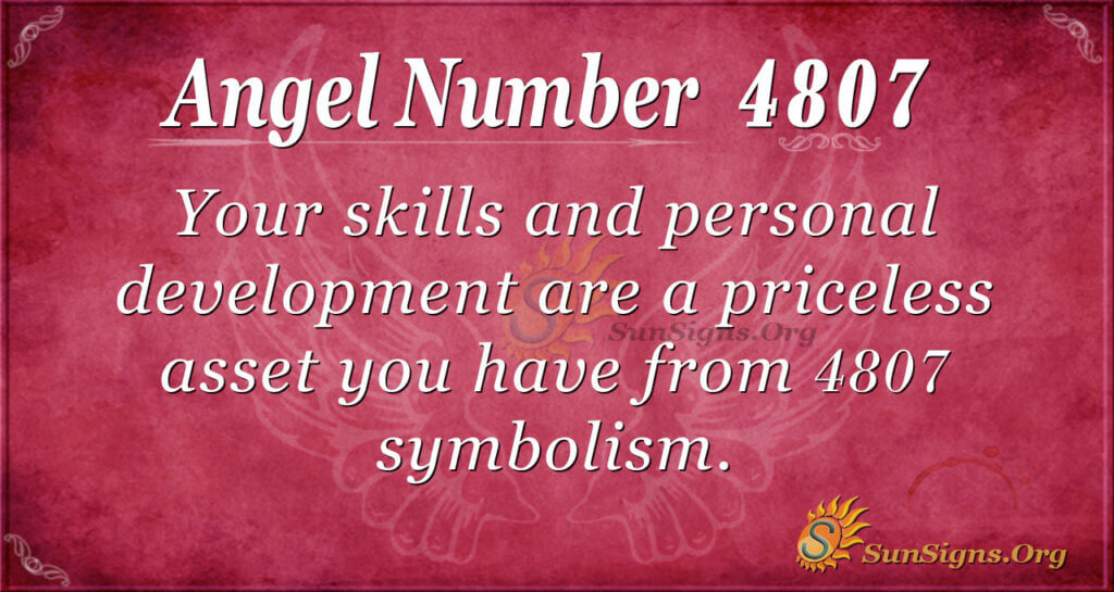 Your skills and personal development are priceless assets derived from 4807 symbolism. Continue to improve them whenever you have an opportunity.