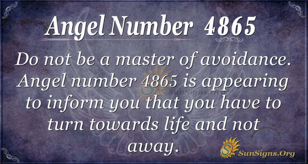 Do not be a master of avoidance. Angel number 4865 appears to inform you that you have to turn towards life and not away. If you want to enjoy life and be more effective, you should situate yourself towards reality. The moment you live within your reality, you will be in a position to handle life effectively. Similarly, you will get familiar with the thing that gave you chills. Seeing 4865 everywhere is ideal as it prepares you to walk the talk.