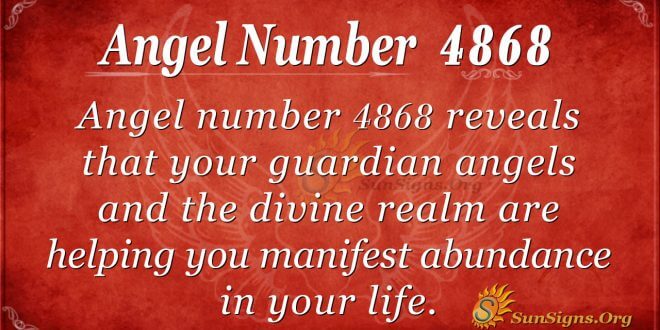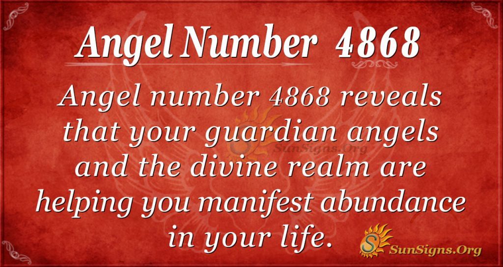 4868, meaning reveals that your guardian angels are helping you manifest abundance in your life. They will always guide and support you so long as you are doing your part. You should know that your guardian angels and the divine realm are supporting your needs.