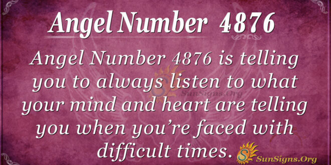 Angel Number 4876 advises you to trust your intuition and listen to what your mind and heart are telling you when faced with difficult times, and to maintain a positive outlook.