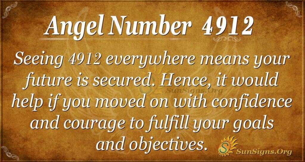 Angels are very concerned about your path. Therefore, seeing 4912 everywhere means your future is secured. Hence, it would help to move on with confidence and courage to fulfill your goals and objectives. One of your projections is to reach a hype epic of success, which calls on hard work and determination. Hence, rely on angels for guidance and protection.