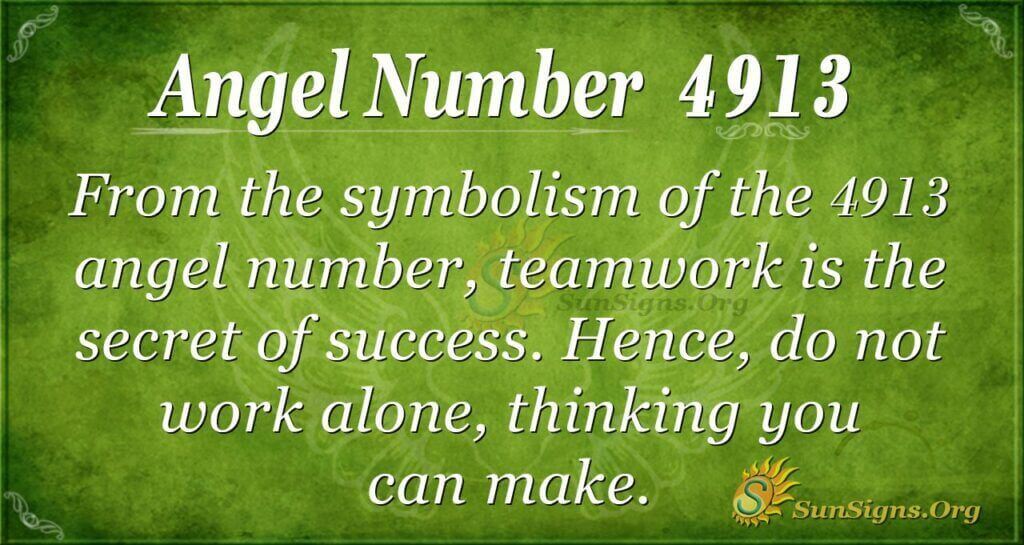 You must be thinking that you can wake up one morning and make your dream come true. But, according to angel number 4913, that is a mere illusion. Furthermore, in most cases, it’s considered to be daydreaming. But, for you to see, witness, and feel success, you must understand it’s never straight. There are many ups and downs, failing and standing, discouragement, and dissociation. All these factors are constant to success.
