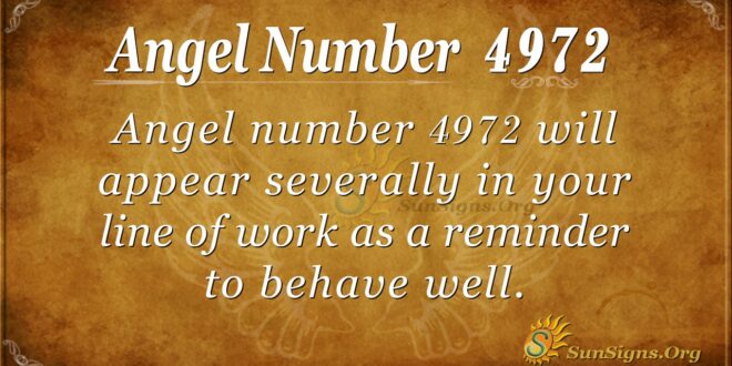 Angel number 4972 will appear constantly in your line of work as a reminder to behave well. You might be doing something that can depict how sensitive you are to matters around you. Therefore, be cautious about displaying what society will perceive as a high intellectual level. One of the factors is showing up on time. When you are punctual in an organization, you don’t rush.