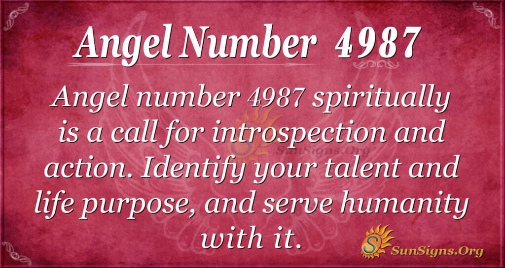 Angel number 4987 spiritually is a call for introspection and action. Look within you, identify your talent and life purpose, and serve humanity with it. This would bring you greater satisfaction than any other physical and monetary pursuit.