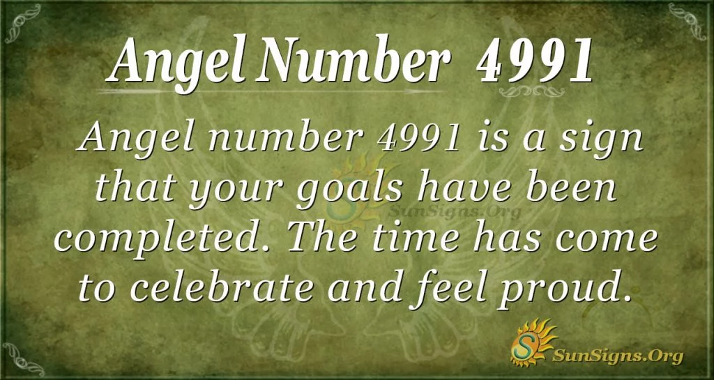 Angel number 4991 signifies that your goals have been completed, or are just about to be completed. Seeing this angel number everywhere should make you happy because you have made some strides in your life. Your guardian angels tell you that the time has come to celebrate and feel proud of all your efforts. No one should discourage you from celebrating your wins in this life. A chapter of your life has just ended, and you should prepare to begin another one.