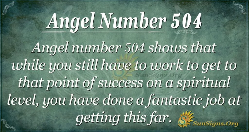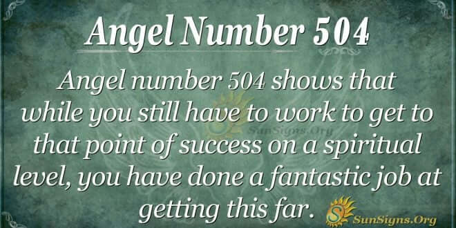 The number 504 means that while you still have to work to reach that point of spiritual success, you have done a fantastic job getting this far. The ministering angels are impressed and proud of you and your hard work. Take a moment to enjoy the glow.