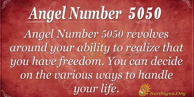 The meaning of Angel Number 5050 revolves around your ability to realize that you have freedom. It represents the opportunity to decide on the various ways that you want to handle your life. In retrospect, the meaning of angel number 5050 wishes to inform you that your life decisions are yours.
