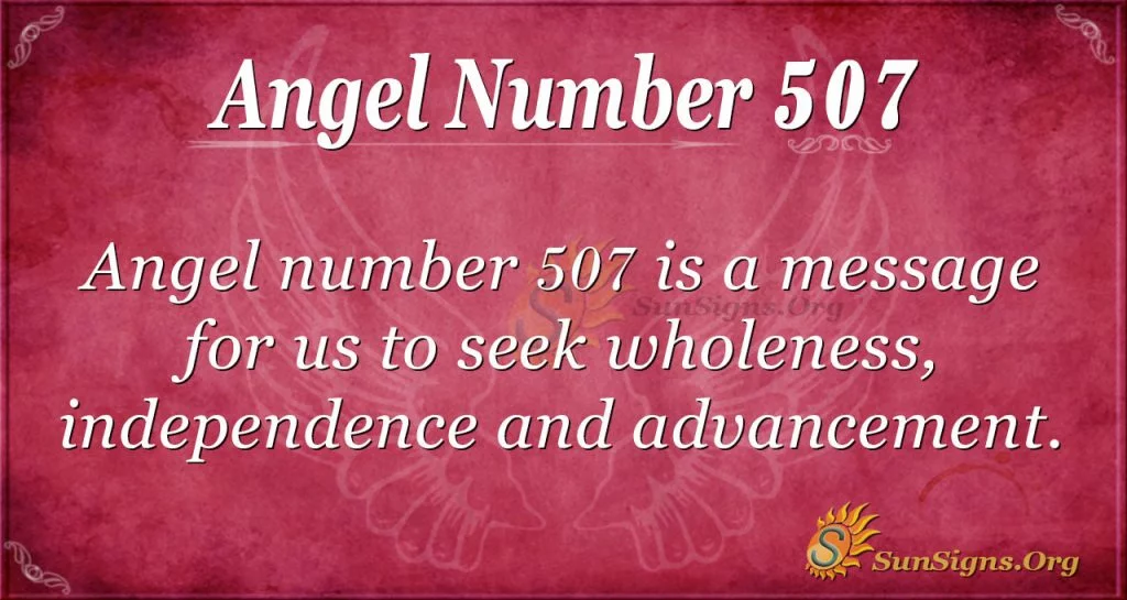 Angel number 507 is a message to seek wholeness, independence, and advancement. It also denotes freedom from limitation and the possibility of promotion.