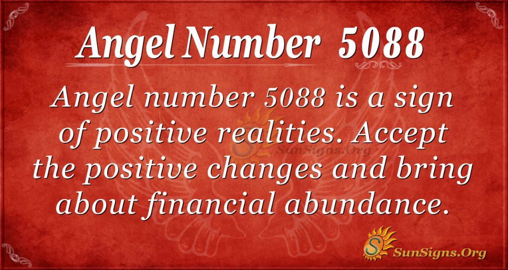5088, meaning reveals that you should make some changes in your life to bring financial abundance your way. Accept the positive changes that are coming your way and make the best out of them. Change is inevitable; hence the same cannot be avoided. Be flexible enough to fit in any circumstance that you find yourself in.