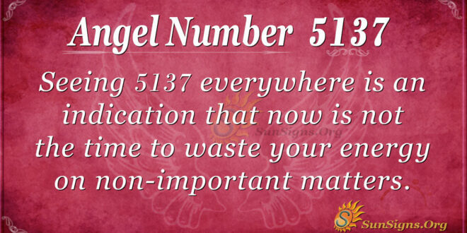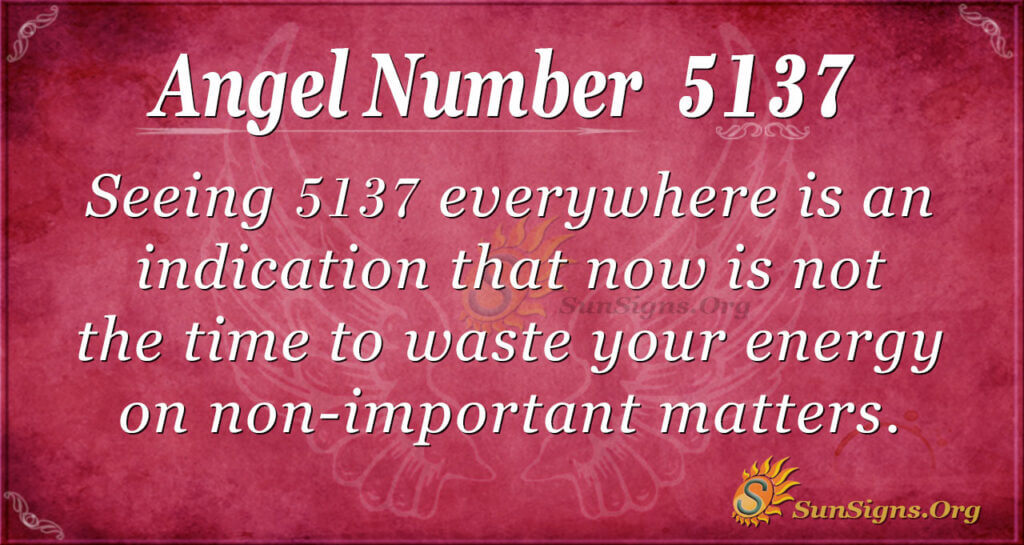 Angel Number 5137 encourages you to stay focused on the important things in your life. First, know what is important to you and concentrate on achieving that. Do not mix yourself up by doing too many things at once.