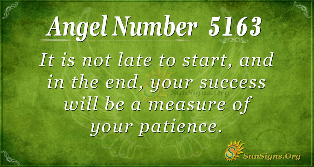 5163 symbolizes that the effort and time put into achieving success are essential. The universe will give you strength and protection as you pursue your goal. It also indicates that challenges will always be there in what you do in life; therefore, perseverance should be part of you.