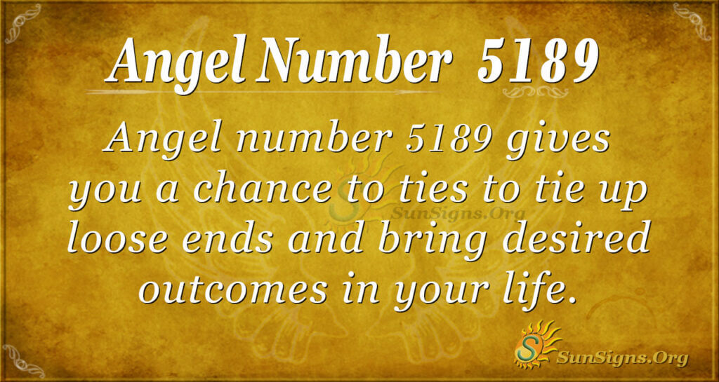 Angel number 5189 gives you a chance to tie up loose ends and bring desired outcomes in your life as you have always planned. The appearance of this number is not by chance; preferably, the angels are using this number to lead you to a desirable experience.