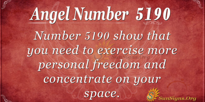 If you need clarity on 5190, here is guidance for you. Have you been encountering number 5190 in recent times? The sign is an indication that the angels are interested in your life. Angel number 5190 appears in your life to show that you need to exercise more Angel number 5190 appears in your life to show that you need to exercise more personal freedom and concentrate on your space.