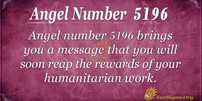 Angel number 5196 brings you a message from the divine protectors that you will soon reap the rewards of your humanitarian work. The angels have recognized your efforts to improve the state of humanity around you.