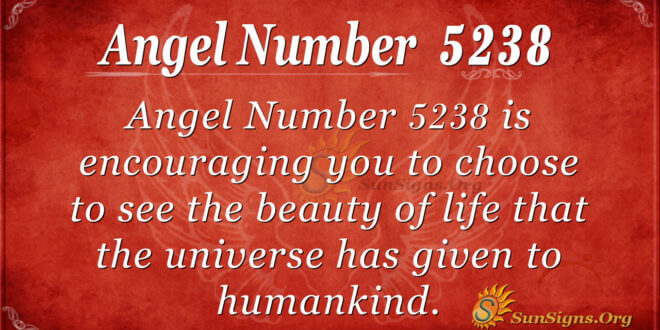 The universe has granted us all the good things that we need in this life. Angel Number 5238 encourages you to see the better side of things, and you will discover the beauty of life. Do not be discouraged by the bad things in life.