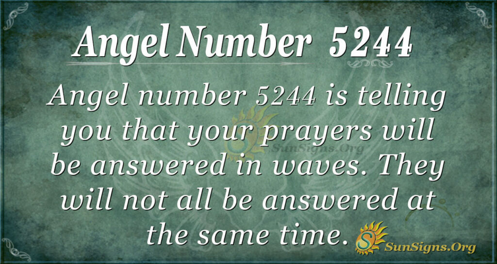 5244 angel number tells you that your prayers will be answered in waves. They will not all be answered at the same time. Keep your faith strong, and call on your guardian angels for guidance when needed. Even without you asking, your guardian angels continually seek ways to assist you.