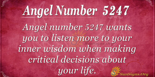 The recurrence of 5247 in your life is not by coincidence but for a reason. Through this number, the Universe has essential information for you. Angel number 5247 is a powerful sign that wants you to listen more to your inner wisdom when making important decisions concerning your life.