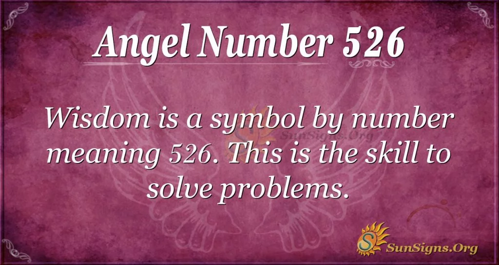 Wisdom is a symbol represented by the number 526. This is the skill to solve problems. You have a talent for solving issues. The ministering angels are telling you that your gift is needed. It may be in your family at home. It is possibly at work. You need to go and offer the help needed.