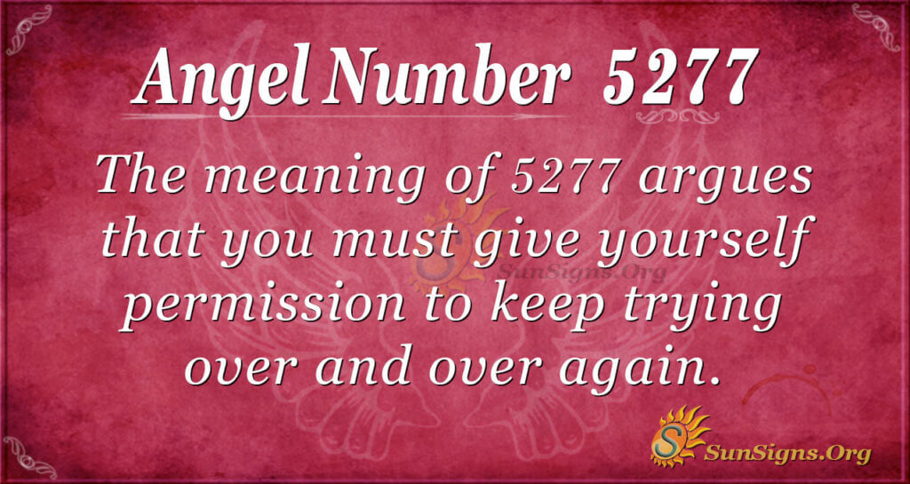 More importantly, the meaning of 5277 argues that you must permit yourself to keep trying over and over again. You failed once. Accept it and find a way out. Every day should be a day worth celebrating and working hard towards your goals.