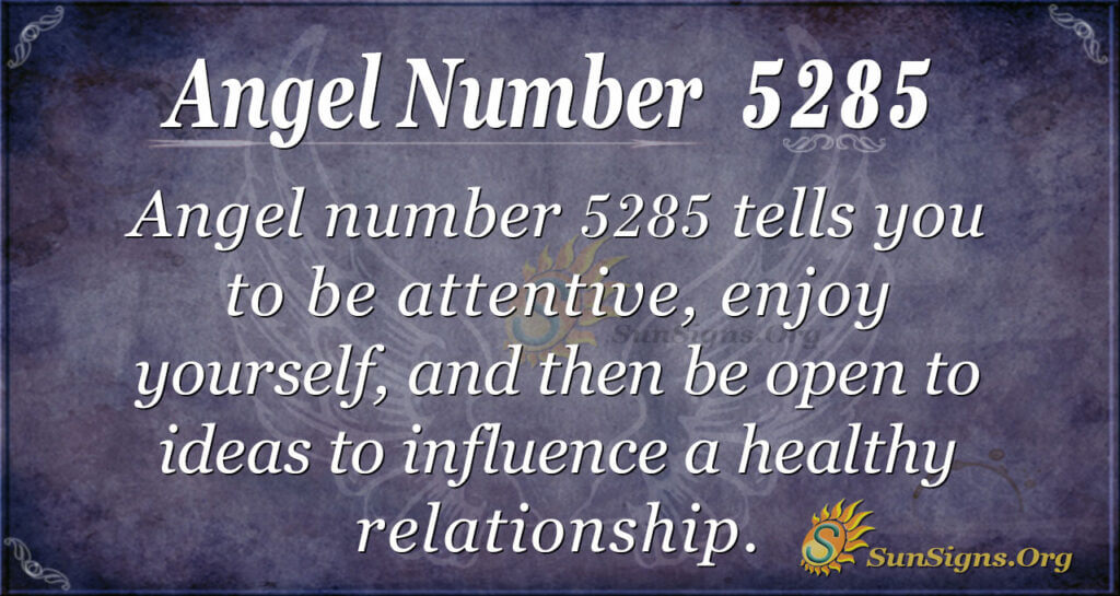 Angel number 5285 tells you to be attentive, enjoy yourself, and then be open to ideas to influence a healthy relationship.