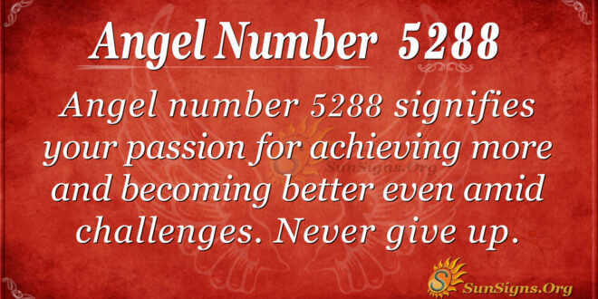 Angel Number 5288 signifies your passion for achieving more and improving even in the face of challenges, difficult times, and doubts. Never give up in life because life has great things to offer.