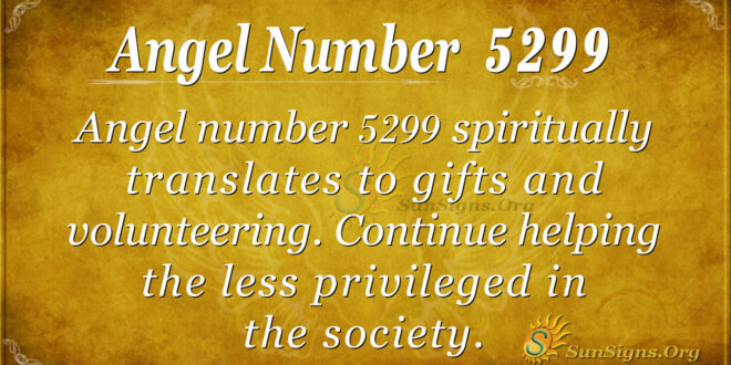 Angel number 5299 is sponsored by 52 angel numbers, number 529, number 59, number 99, and number 299.