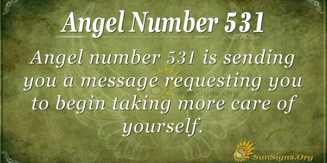 Number 531 is sending you a message to start taking better care of yourself. Go on vacation. Buy yourself good clothes and shoes. Go out more often and socialize with those who bring you joy. Do not deny yourself. This is a message from the ministering angels.