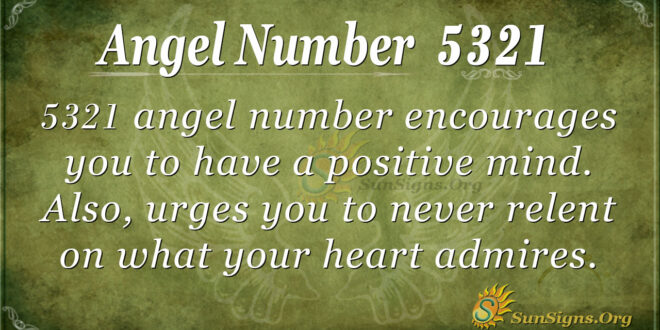 5321 angel number encourages you to have a positive mind. Also, it urges you to never relent on what your heart admires.