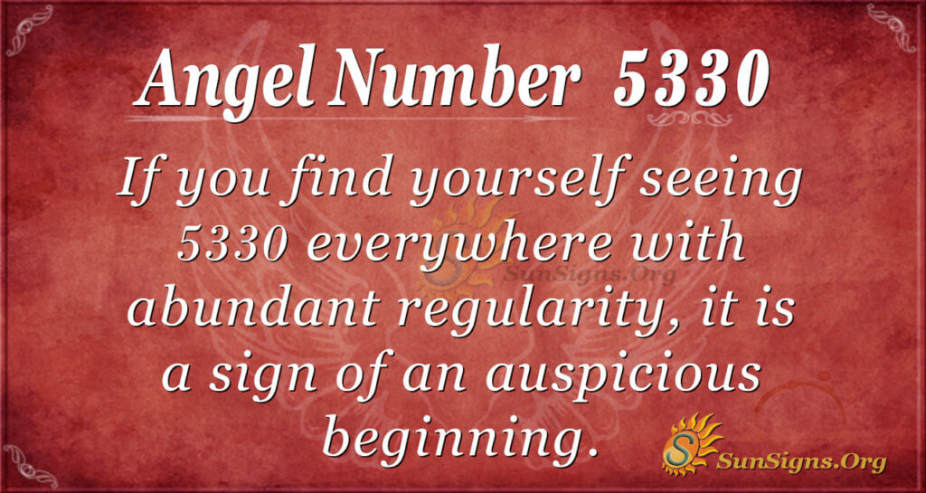 If you find yourself seeing 5330 everywhere with abundant regularity, it is a sign of an auspicious beginning. In an attempt to make you aware of the blessed presence of sacred number 5330 in your life, your guardian angels make you experience seeing 5330 everywhere.