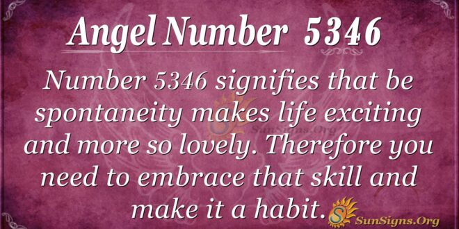 Number 5346 symbolizes that kindness and determination bring spontaneity to life. It makes you creative in making things work in your relationship and helps you be open-minded and become a great thinker.