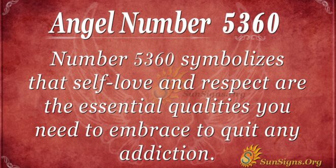 Number 5360 twin flame symbolizes that self-love and respect are the essential qualities you need to embrace to quit any addiction. Furthermore, you are responsible for your life, so you need to take a step and make a proper decision that will enable you to quit that habit.