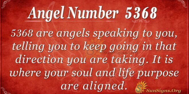 5368 are angels speaking to you, telling you to keep going in that direction you are taking. It is where your soul and life purpose are aligned. Therefore you need angelic guidance and divine grace to guide you to your life goals in life.